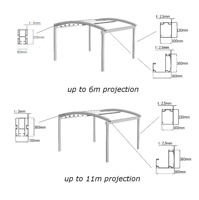 The ARCH retractable pergola comes in 4.0m maximum width modules that can be staggered next to each other seamlessly to form an integarted system