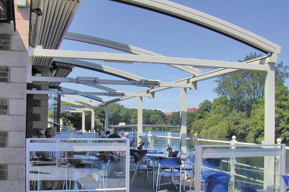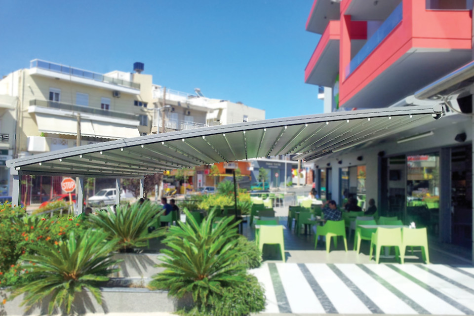 The CURVE retractable pergola comes in 4.0m maximum width modules that can be staggered next to each other seamlessly to form an integarted system