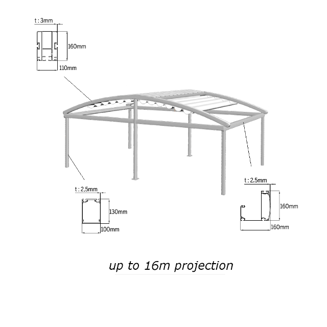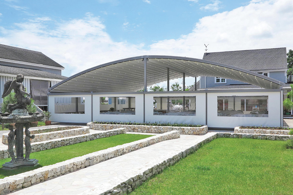 The DUOCURVE retractable pergola system is a combination of two back to back CURVE systems. It comes in 4.0m maximum width modules that can be staggered next to each other seamlessly to form an integarted system