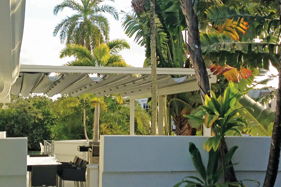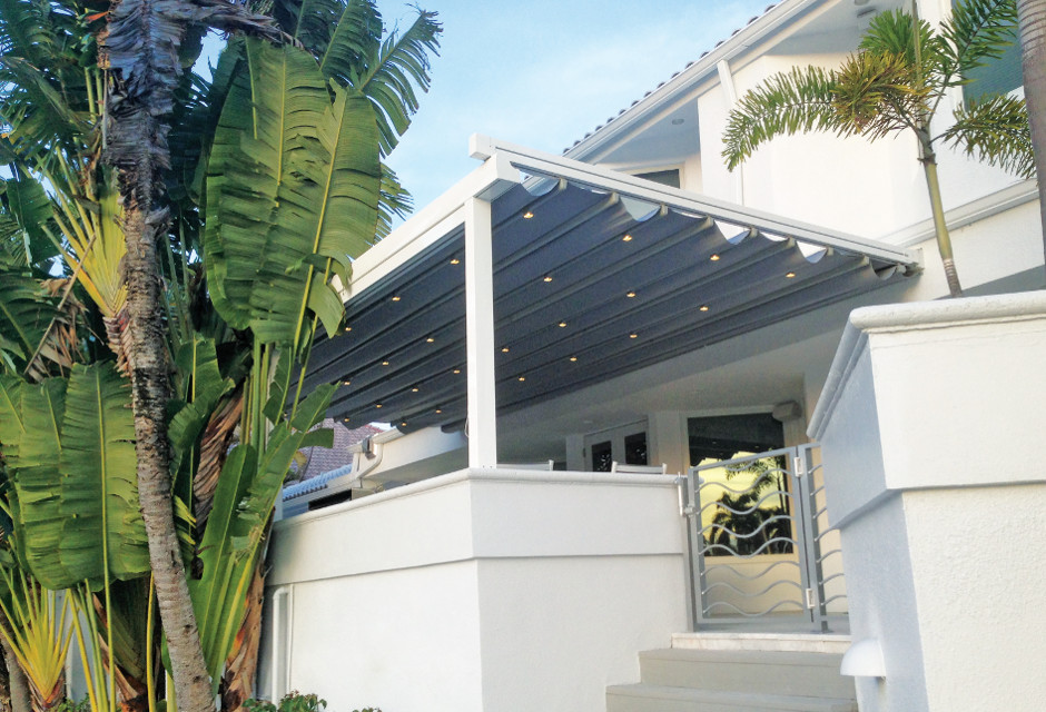The FLAT retractable pergola comes in 3.5m maximum width modules that can be staggered next to each other seamlessly to form an integarted system